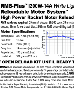 This RMS motor reload utilizes RCSs exclusive Redline™ aerospace grade composite propellant formulation, which produces a visible scarlet flame. Redline™ motors burning rate lies midway between that of White Lightning™ and Blue Thunder™. Photos don’t do justice to the “laser-beam” intensity and color of Redline™…. you have to see it to appreciate it!
