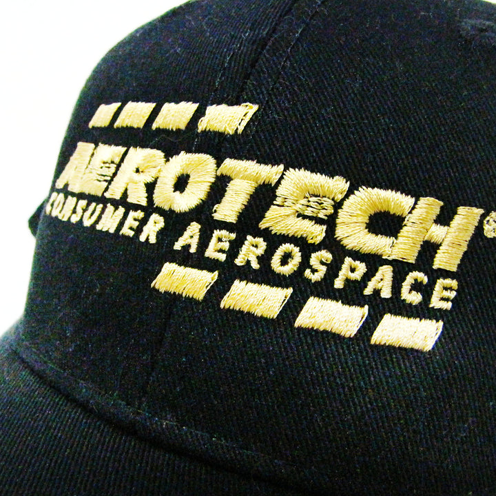 Official black cloth hat emblazoned with the AeroTech logo in gold. Great for keeping the sun out of your eyes as you watch your rocket launch into the skies.