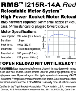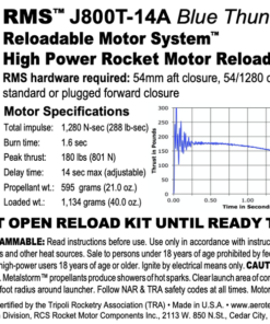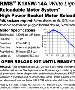 The AeroTech motor reload kit comes with 1 rocket motor reload. Reload kits include all internal motor components and FirstFire™ Initiators. Requires HAZMAT shipping via UPS or FEDEX. The sale of this high power motor to persons under 18 years of age is currently prohibited by federal law. This is a High-Power motor requiring Level 1 High-Power certification through NAR or Tripoli to purchase. Orders containing this item will not be shipped until proof of age (such as a copy of a driver’s license) and proof of Level 1 certification is received.