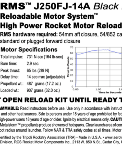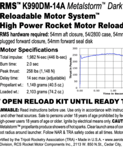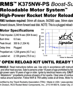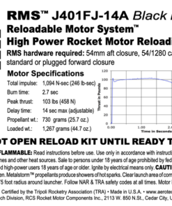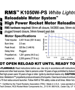 The AeroTech motor reload kit comes with 1 rocket motor reload. Reload kits include all internal motor components and FirstFire™ Initiators. Requires HAZMAT shipping via UPS or FEDEX. The sale of this high power motor to persons under 18 years of age is currently prohibited by federal law. This is a High-Power motor requiring Level 1 High-Power certification through NAR or Tripoli to purchase. Orders containing this item will not be shipped until proof of age (such as a copy of a driver’s license) and proof of Level 1 certification is received.