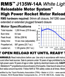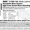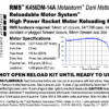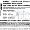 This RMS motor reload utilizes RCSs exclusive Redline™ aerospace grade composite propellant formulation, which produces a visible scarlet flame. Redline™ motors burning rate lies midway between that of White Lightning™ and Blue Thunder™. Photos don’t do justice to the “laser-beam” intensity and color of Redline™…. you have to see it to appreciate it!
