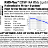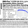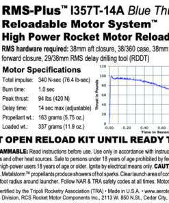 This RMS motor reload utilizes RCSs exclusive Blue Thunder™ aerospace grade composite propellant formulation, which produces a gorgeous bright violet-blue flame with a minimum of exhaust smoke. Blue Thunder™ motors provide a higher level of thrust than White Lightning™ motors of the same total impulse and are perfect for high lift-off acceleration.