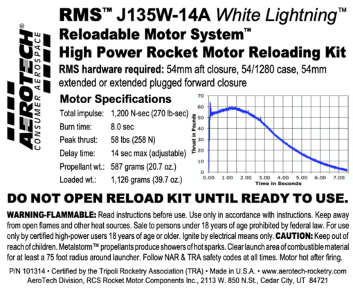 AeroTech J135W-14A RMS-54/1280 Reload Kit (1 Pack) – 101314