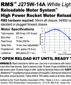 This RMS motor reload utilizes RCSs exclusive White Lightning™ aerospace grade composite propellant formulation, which produces a gorgeous bright white flame with lots of dense white smoke and a throaty roar at lift-off.