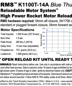 The AeroTech motor reload kit comes with 1 rocket motor reload. Reload kits include all internal motor components and FirstFire™ Initiators. Requires HAZMAT shipping via UPS or FEDEX. The sale of this high power motor to persons under 18 years of age is currently prohibited by federal law. This is a High-Power motor requiring Level 2 High-Power certification through NAR or Tripoli to purchase. Orders containing this item will not be shipped until proof of age (such as a copy of a driver’s license) and proof of Level 2 certification is received.