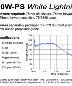 This RMS motor reload utilizes RCSs exclusive White Lightning™ aerospace grade composite propellant formulation, which produces a gorgeous bright white flame with lots of dense white smoke and a throaty roar at lift-off.