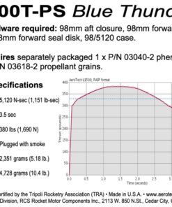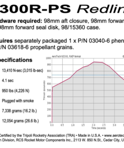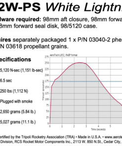 The AeroTech motor reload kit comes with 1 rocket motor reload. Reload kits include all internal motor components and FirstFire™ Initiators. Requires HAZMAT shipping via UPS or FEDEX. The sale of this high power motor to persons under 18 years of age is currently prohibited by federal law. This is a High-Power motor requiring Level 2 High-Power certification through NAR or Tripoli to purchase. Orders containing this item will not be shipped until proof of age (such as a copy of a driver’s license) and proof of Level 2 certification is received.