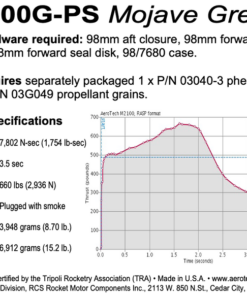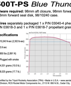 The AeroTech motor reload kit comes with 1 rocket motor reload. Reload kits include all internal motor components and FirstFire™ Initiators. Requires HAZMAT shipping via UPS or FEDEX. The sale of this high power motor to persons under 18 years of age is currently prohibited by federal law. This is a High-Power motor requiring Level 2 High-Power certification through NAR or Tripoli to purchase. Orders containing this item will not be shipped until proof of age (such as a copy of a driver’s license) and proof of Level 2 certification is received. Also, this motor requires U.S. State Department Licensing (SDL) for export (international shipments).