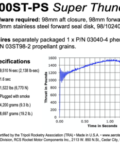 The AeroTech Reloadable Motor System RMS is an aluminum cased reusable motor in kit form that is assembled by the user. You will need AeroTech RMS-98/5120 motor hardware to build and complete the motor for many reliable flights. Motor hardware is available separately in a complete set, and also as individual parts. This motor requires installing a forward seal disc (98FSD) during assembly. Important: High Power RMS reload kits are not compatible with Mid Power RMS products.