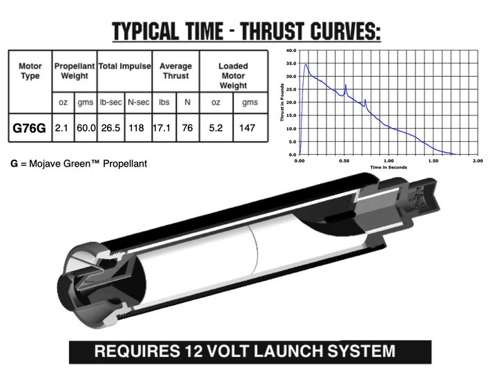 The AeroTech Reloadable Motor System RMS is an aluminum cased reusable motor in kit form that is assembled by the user. You will need AeroTech RMS-29/40-120 motor hardware to build and complete the motor for many reliable flights. Motor hardware is available separately in a complete set, and also as individual parts. Important: Mid Power RMS reload kits are not compatible with High Power RMS products. This RMS motor reload utilizes RCSs exclusive Mojave Green™ aerospace grade composite propellant formulation, which produces a brilliant green exhaust plume with a moderate amount of smoke. Mojave Green™ motors high density and specific impulse delivers a higher total impulse in each motor size than any other AeroTech propellant.